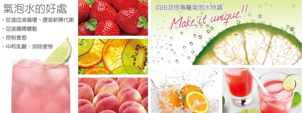 不再購買瓶裝氣泡水來向您的顧客強調品味,只需要一台機器,連接過濾水就可以製造出與市售瓶裝氣泡水毫無差異的時尚品味氣泡調飲