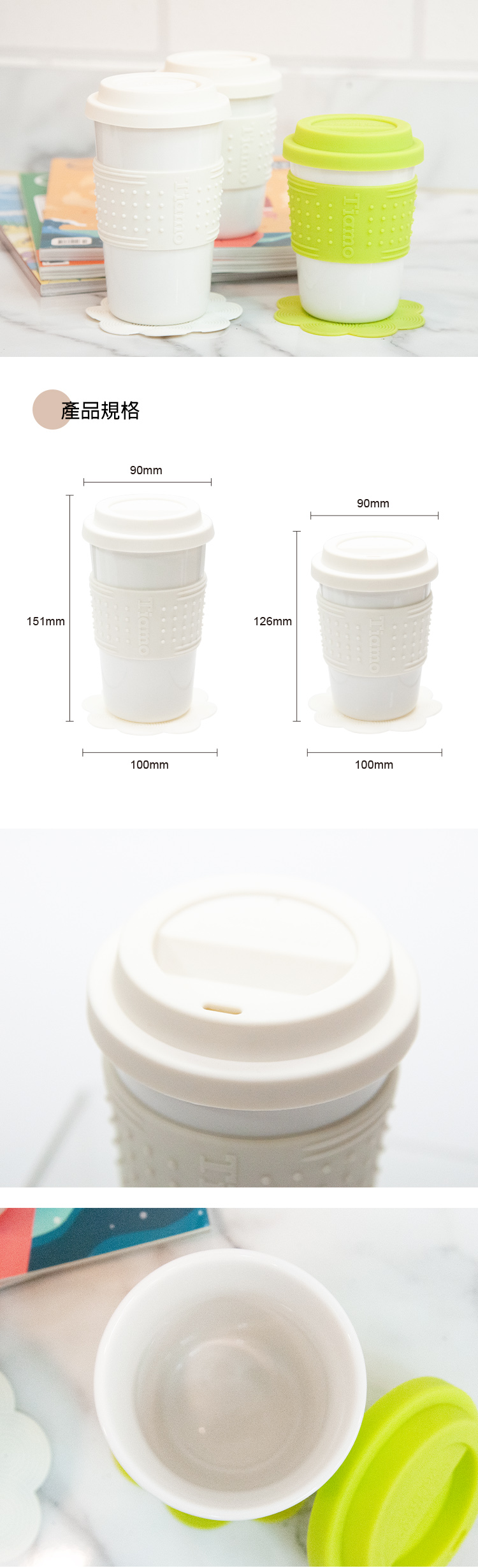 馬克杯360cc(乳白)附矽膠蓋.直型矽膠套.矽膠墊